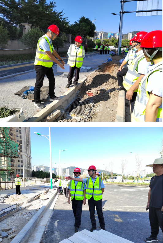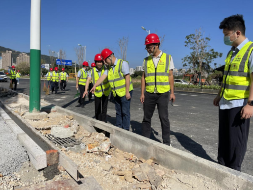 在檢查現場,檢查組一行認真查看道路施工安全隱患,并要求施工單位立即整改,同時,市政集團黨支部書記、董事長徐旺興還強調,一要嚴把質量關,強化質量監督,抓質量的同時還要重安全,堅持“標準化、規范化、程序化”作業,施工過程嚴格按照操作規程施工,嚴禁違章施工,確保安全生產;二要排除安全隱患,對檢查中發現的安全問題要及時與項目負責人對接溝通,并正式通車前逐項整改,不留死角;三要強化全局意識,完善工作機制,施工和監理單位要緊密協調配合,提高工作效率,嚴控時間節點,全力以赴打好項目攻堅戰,確保如期通車,為廣大群眾提供“優質、安全、舒適”的通行環境。